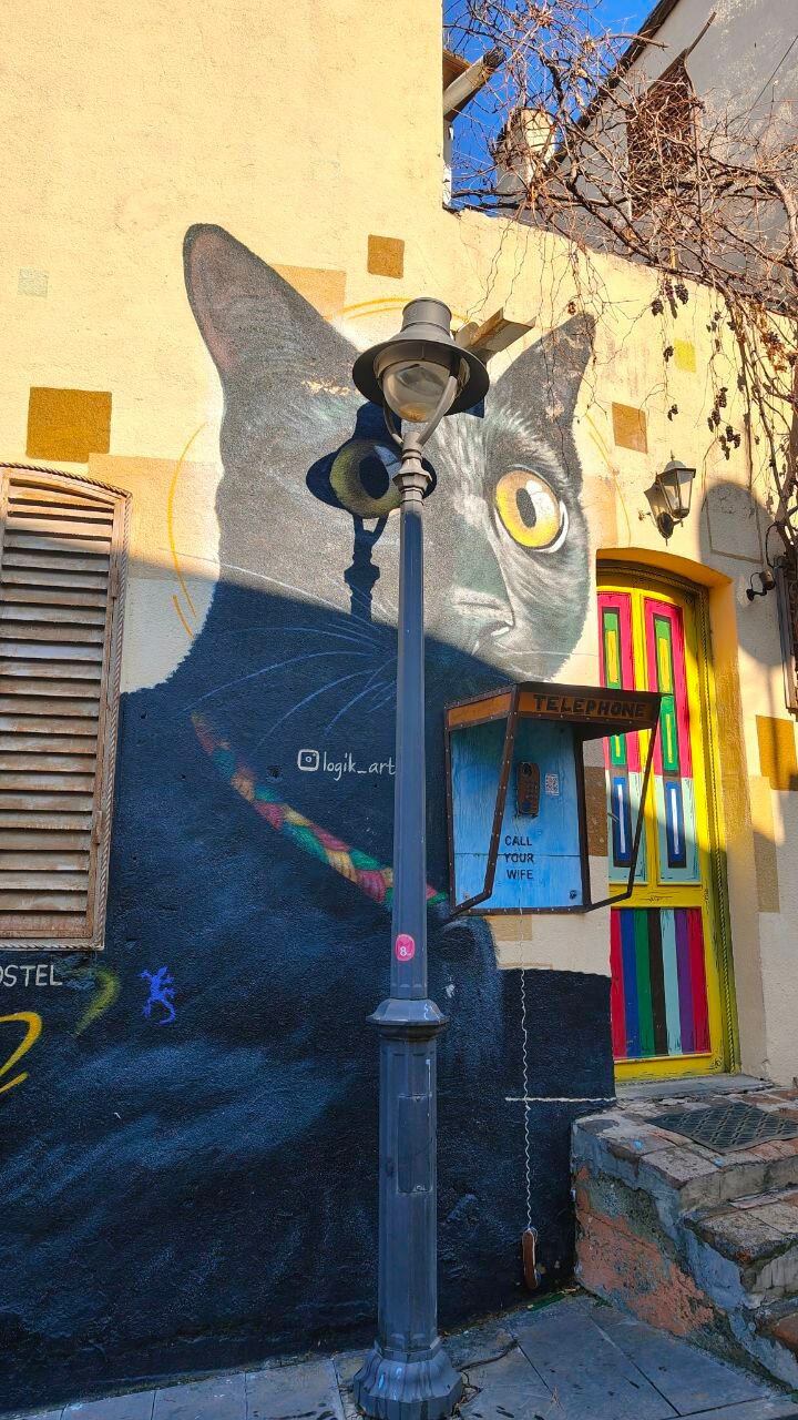 Постыдились, что у нас ничего для них нет. Кошки тут, походу, на самовыгуле, миски повсюду на улицах, а если надумаешь посреди улицы шуршать пакетиком и что-то доставать, их тут же материализуется целая орда. Вообще, мне особенно понравилось, что, как и в Стамбуле, здесь уличные кошки вполне чистые, не лишайные, крепенькие и красивые, и много-много кошкограффити.