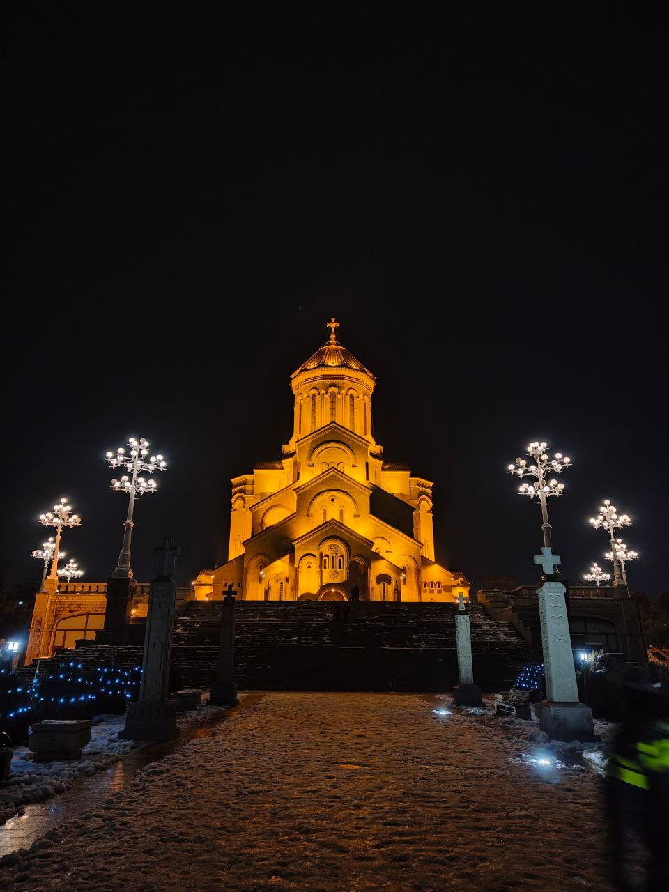 А бродим мы в сторону Цминда Самеба, гигантского, монументального, но новодельного храма Святой троицы. Там крутая смотровая, ну и вообще это самый огромный храм Европы. А оттуда просто рандомными улочками, которые прекрасны все, спускаемся к площади Свободы в поисках еды.