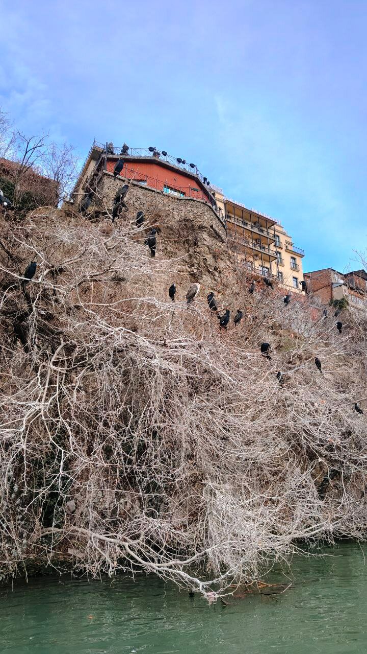 А сейчас ещё один интересный дядька уговаривает нас смотреть на бакланов! И бакланы — не мы) Лодочная прогулка длится полчаса, стоит 60 лари на двоих (~1700 рублей) и впечатлила меня чуть ли не больше всего в поездке! Там баклааааны! Они прикольные такие! Страшные, огромные, чёрные-чёрные птицы на белых-белых деревьях. Меня опять флешбэкнуло в персонажей «Лабиринтов Ехо» — страшных чёрных птиц Харумбы, охраняющих своих мертвецов. Жутко романтично!