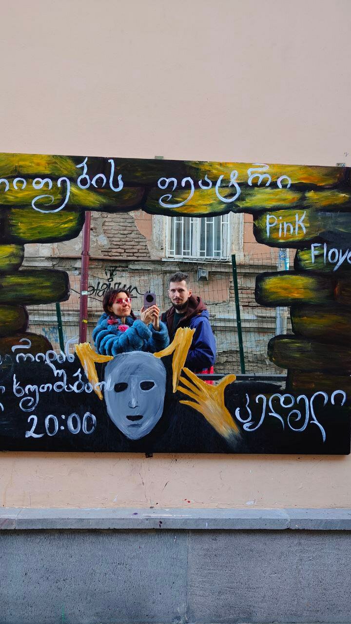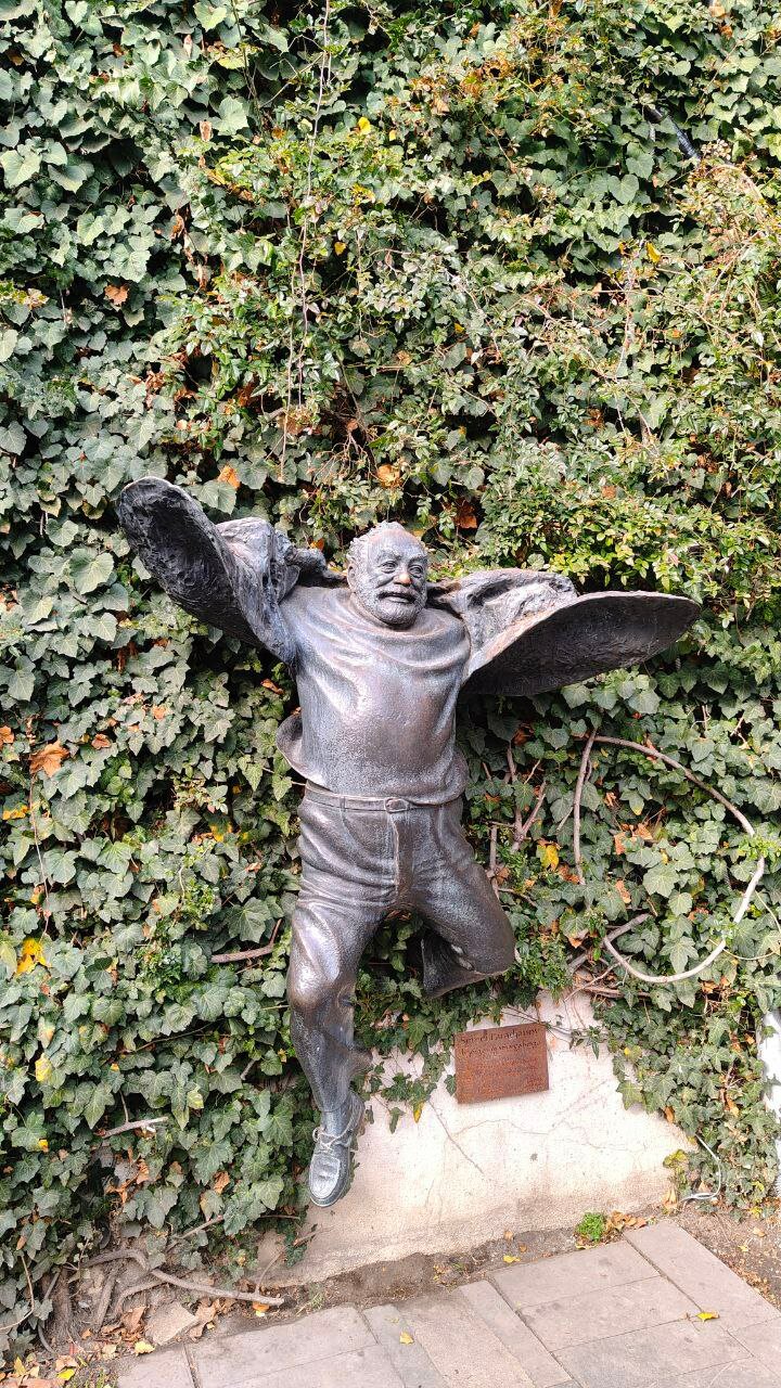 Ещё случайно зашли на «улицу дизайнеров» (это тоже от площади Вахтанга, на 2-м входе из Мейдан базара) и там наткнулись на памятник Сергею Параджанову. Я не знала, кто этот летящий дядька, а оказалось, очень интересный персонаж! Практически наш Дали. Хочу теперь посмотреть его фильмы (на коллажи в интернете залипала целый вечер).