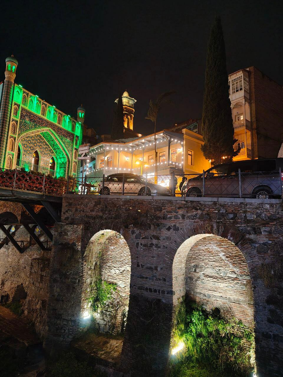 На обратном пути наконец-то проходим мост Мира ночью. Красиво.