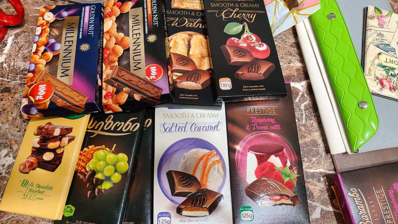 Весьма рекомендую шоколадки (особенно с вишенкой и машинкой понравились). И в магазине продуктов (сетевой SPAR здесь типа нашего Магнита) они гораздо дешевле (6 с небольшим лари, ~180 рублей), штрихкод на 486 должен начинаться.