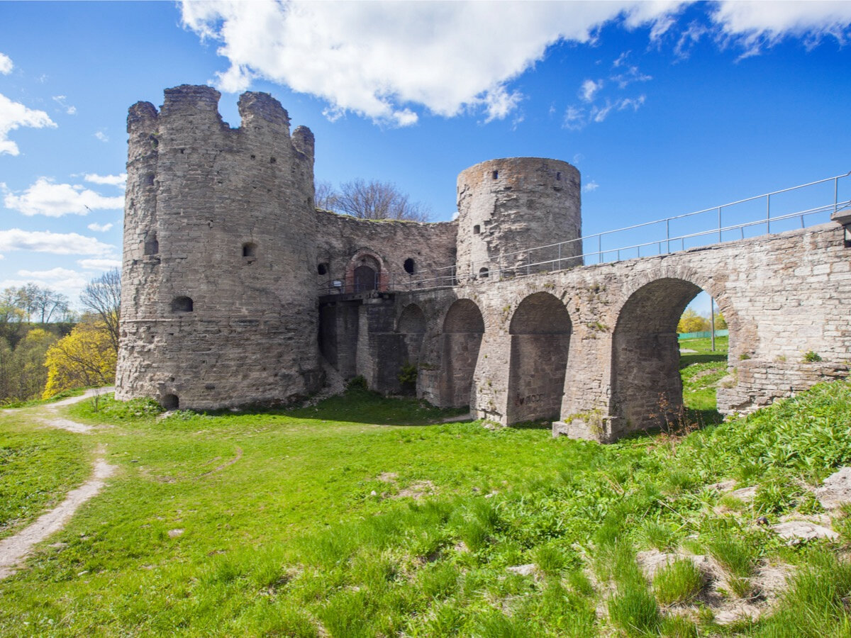 История сооружения впечатляет: деревянную крепость в этом месте построили рыцари Ливонского ордена (1240), каменную — новгородцы (1280, 1297). Последняя реконструкция крепости проводилась в конце XV — начале XVI века по инициативе Московского княжества. Результаты этой работы мы можем увидеть сегодня, но некоторые участки кладки датируются XIII веком.